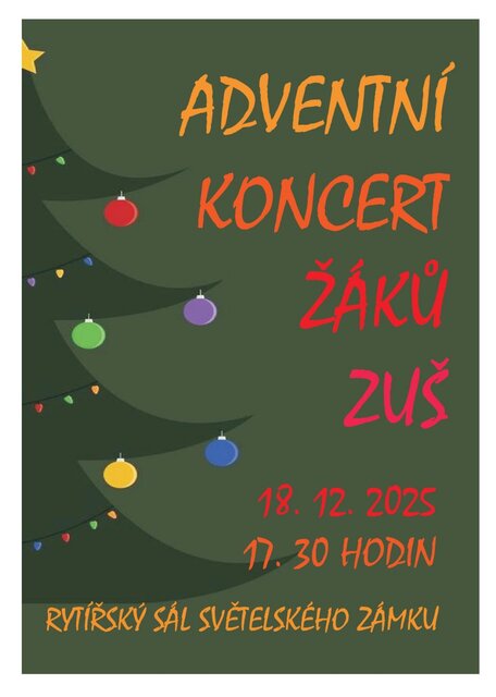 Základní umělecká škola ve Světlé nad Sázavou vás zve na adventní koncert žáků, který se uskuteční 18. 12. 2025 od 17:30 v Rytířském sále na zámku ve Světlé nad Sázavou