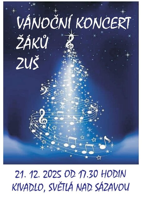 Neděle 21.12.2025: Pozvánka na vánoční koncert žáků ZUŠ v Kivadle, zač. 17.30.