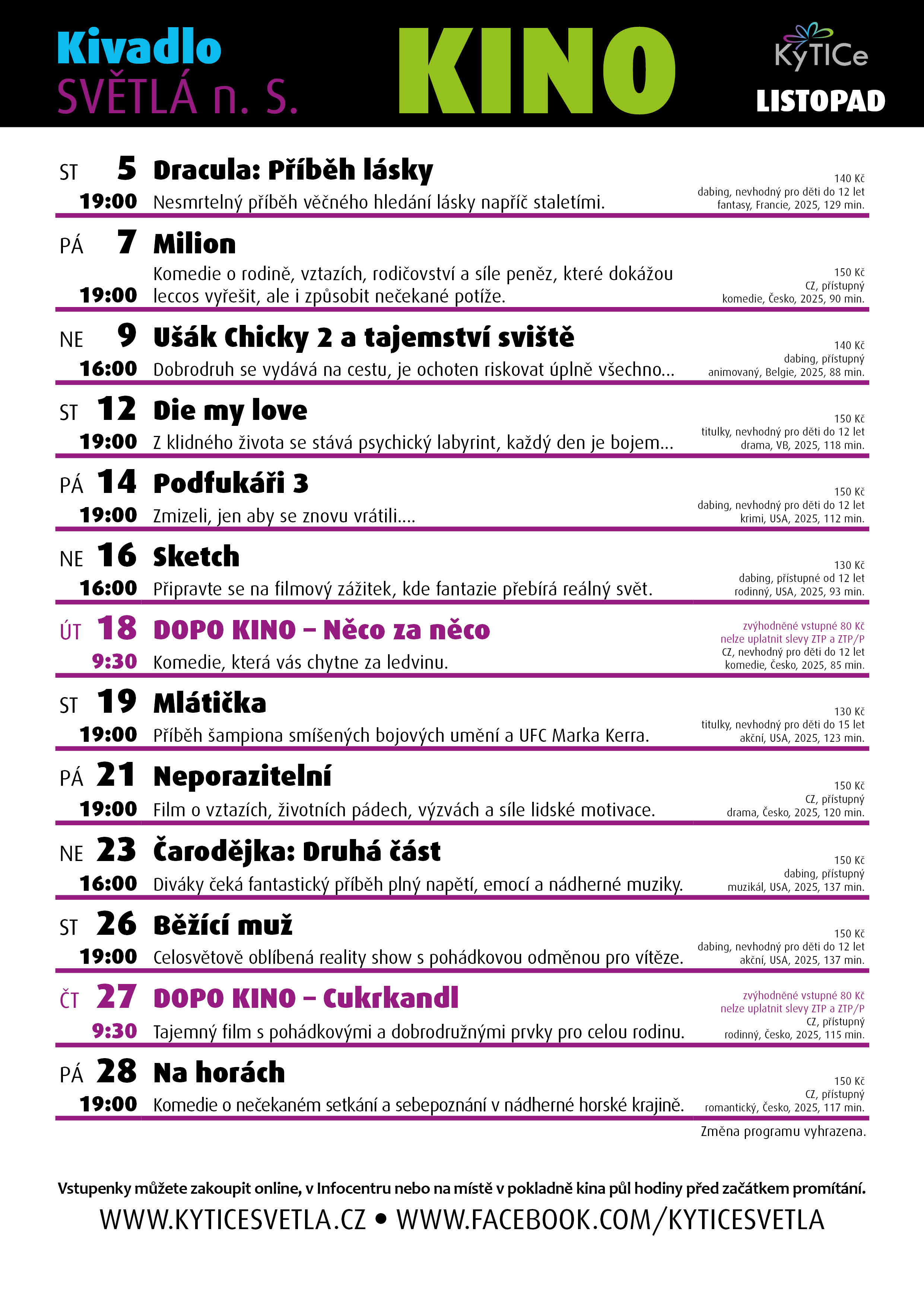 Prodej vstupenek od 1. září 2025 od 8 hodin online i v Infocentru.
