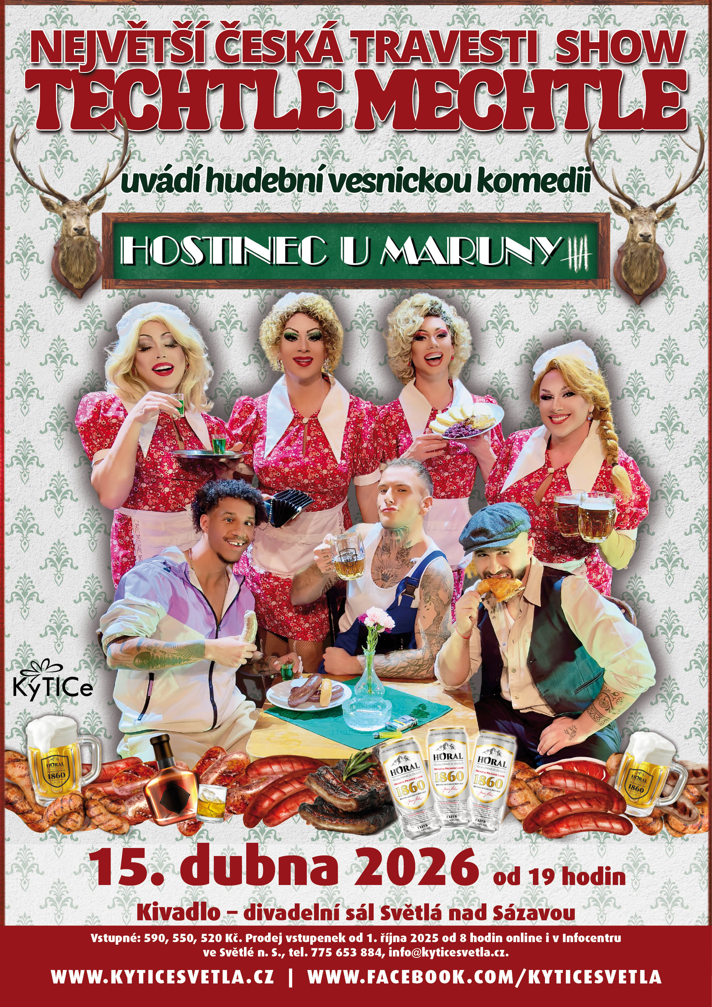 Rezervace vstupenek je možná pouze na tel. 775 653 884, e-mailu info@kyticesvetla.cz nebo osobně v Infocentru. Rezervace platí pouze 5 dnů. Vstupenky je nutné si do té doby vyzvednout během otevírací doby v Infocentru. Veškeré nevyzvednuté rezervace se automaticky 5 dnů před akcí uvolňují zpět do prodeje. Rezervace vstupenek až do akce není možná. Zákazník bere na vědomí, že rezervace je nezávazná a v případě, že si vstupenky nevyzvedne ve stanoveném čase, může prodávající vstupenky uvolnit k prodeji bez dalšího oznámení zákazníkovi. Rezervaci lze odvolat osobně nebo telefonicky v Infocentru. Zákazník bere na vědomí a bezvýhradně souhlasí, že jím zadané kontaktní údaje mohou být zaznamenány v systému za účelem pozdějšího kontaktování prodávajícím.